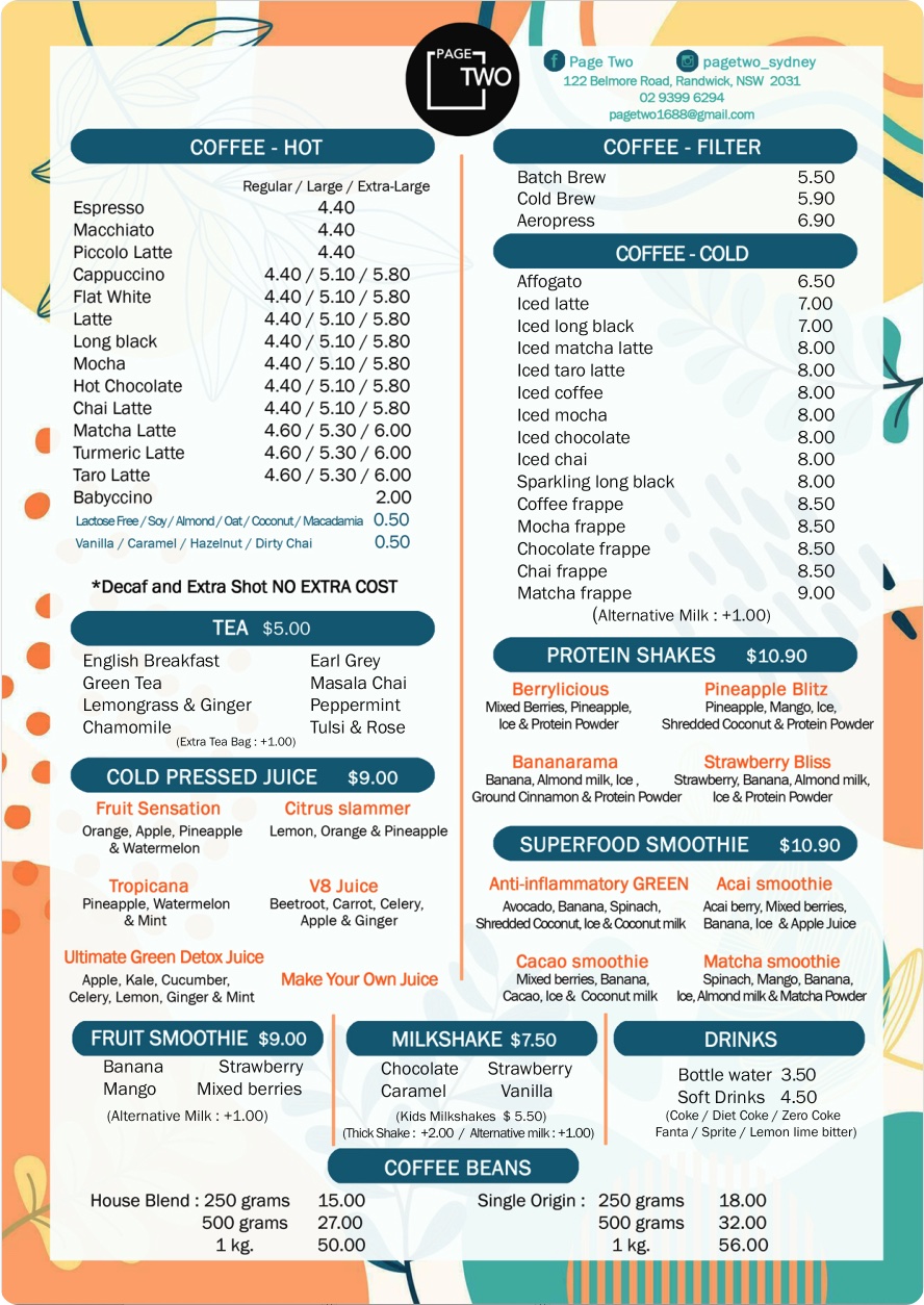 PageTwo Cafe Menu 20240705-1